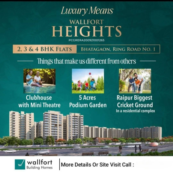 Wall Fort Heights is more than just a residential project — it’s a thoughtfully designed township that blends comfort, security, and lifestyle in one of Raipur’s most promising locations. Developed by the trusted Wallfort Group, the project offers spacious 3, 4, and 5 BHK homes within a gated community that emphasizes greenery, open spaces, and modern amenities. With excellent connectivity to major city landmarks, a peaceful environment, and a host of lifestyle features like a clubhouse, swimming pool, landscaped gardens, and sports facilities, Wall Fort Heights is ideal for families seeking a quality living experience. The project’s strong construction quality, vastu-compliant designs, and ready-to-move status make it a smart choice for both end-users and investors looking for long-term value and elevated living.
